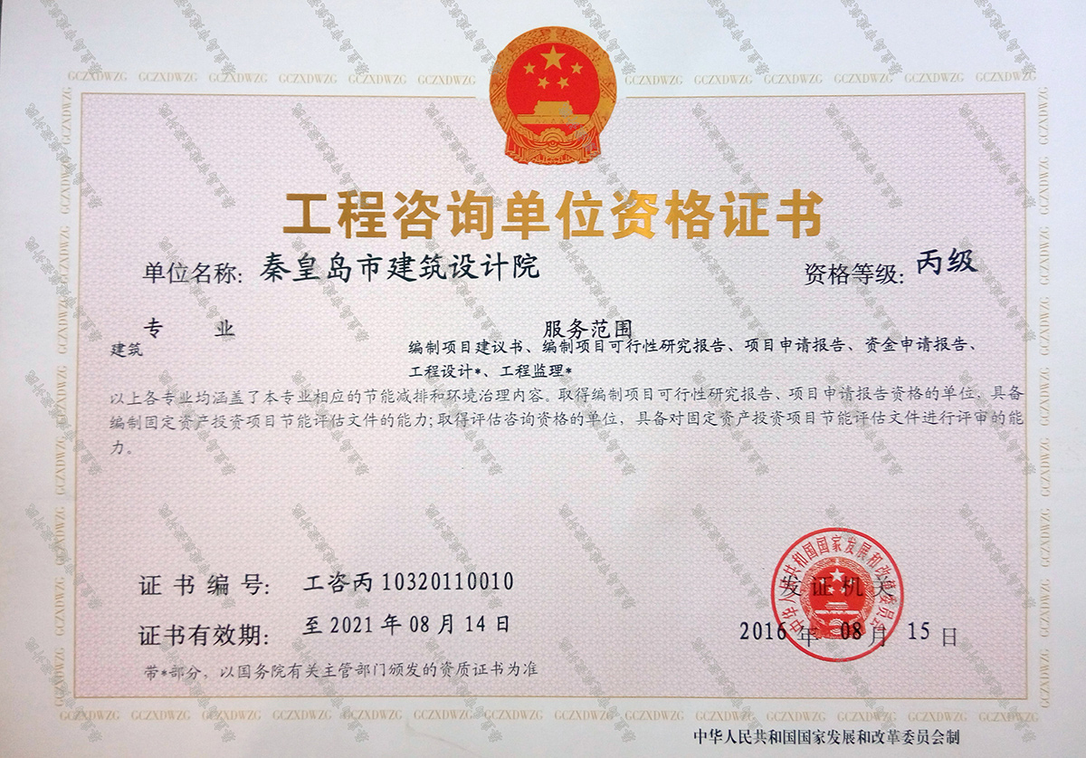 ●組織構架:本部門匯聚著一支經國家注冊登記的咨詢工程師(投資)、注冊造價工程師、注冊結構工程師、注冊建筑師、注冊給排水(暖通)師、注冊電氣師以及秦皇島市節(jié)能專家、秦皇島市綠建專家等組成的20多人專業(yè)技術隊伍。