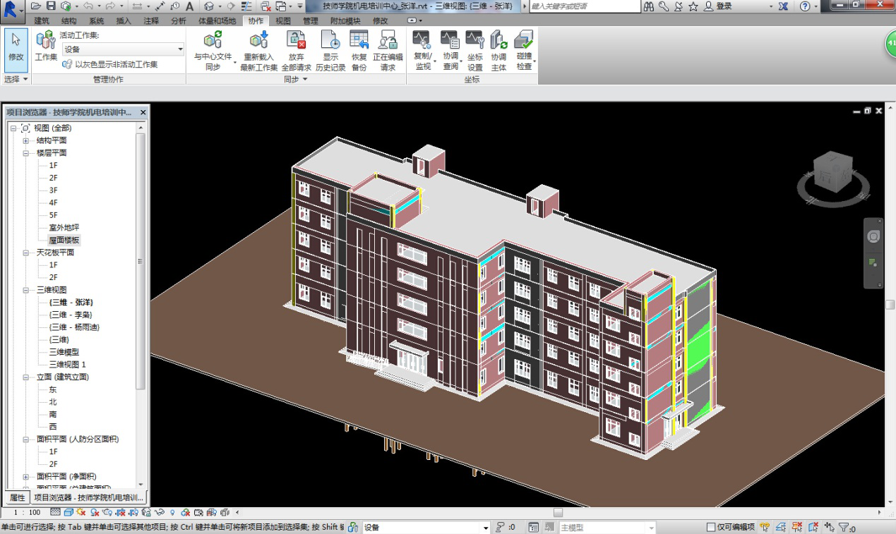 2、 小組成立以來,積極參與各種與BIM相關(guān)的學(xué)習(xí)與活動,整體掌握了Revit設(shè)計軟件,為了使小組的學(xué)習(xí)及研究能真正應(yīng)用到實際工作和工程中,小組各專業(yè)成員利用業(yè)余時間使用Revit完成了對已出施工圖項目的重新設(shè)計。